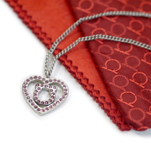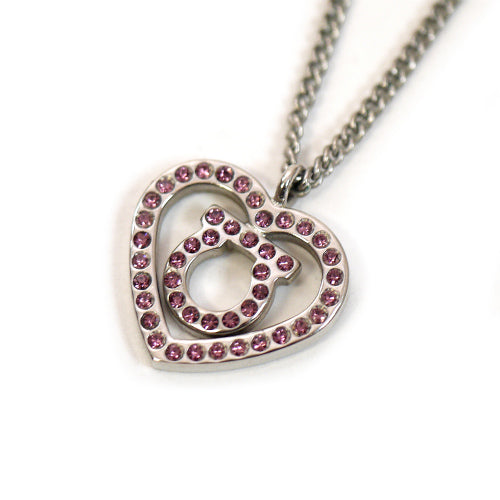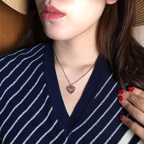 愛らしいハートとガンチーニを組み合わせ、ピンクのジルコニアの輝きは首元を明るく照らします
