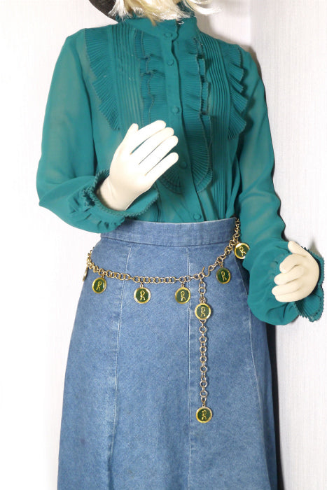 Roberta ゴールドチェーン ネックレス&ベルト(緑)