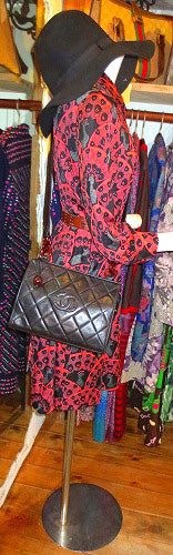 SS-005B SS-005B-2 シャネル リング付きマトラッセ ショルダー(黒) 黒 ココマークも黒 プラスティックリングと丸いシャネルの珠がアクセント! ポケット上シリアルシール有り(7桁 300万台)20年前のヴィンテージ品 ラムスキン Made in Italy サイズ(約 cm)横25 縦19 奥7 ショルダー長113(余裕の斜めがけOK!) 入り口ファスナー 内装本革 ポケット1 ファスナーポケット1 外装、内装ともに美品 SS-005B-10