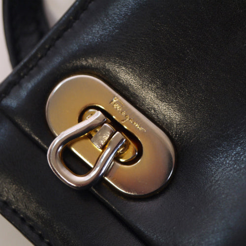 Salvatore Ferragamo 本革ガンチーニ留具2WAYバッグ(黒)
