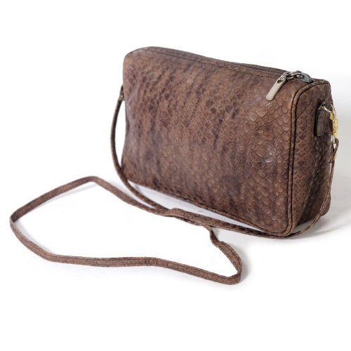 スネークスキン(ヘビ革)デザインの総革製 モカブラウン