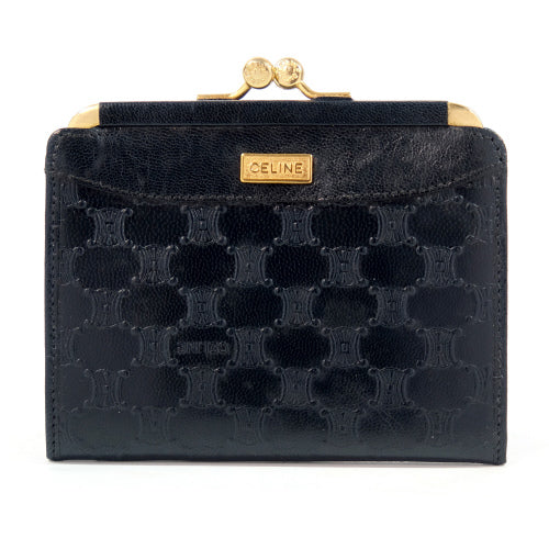 Old Celine マカダム柄がま口小銭入れ(濃紺)