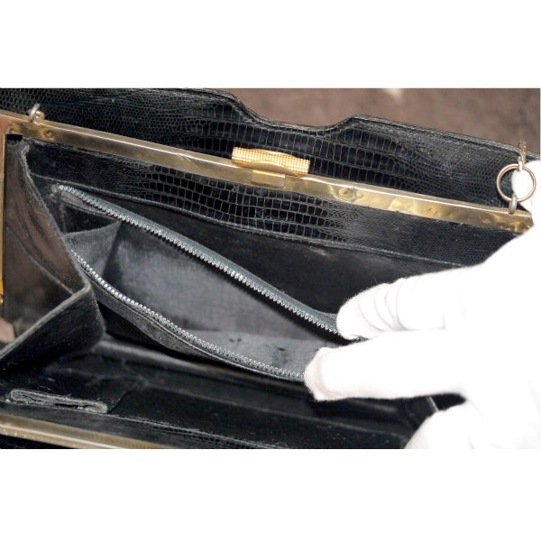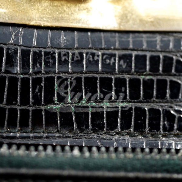 こちらのお品は、1940~60年代より、良質なリザード革を求めアルゼンチンの工場へGUCCIが委託した商品であると推定されます。