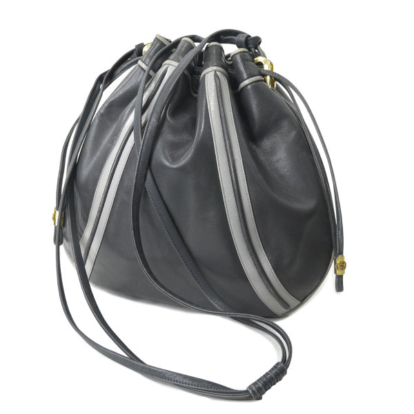 オールドグッチ デザインライン巾着ショルダー(グレー)