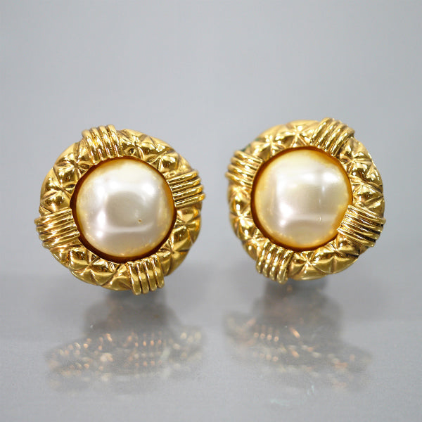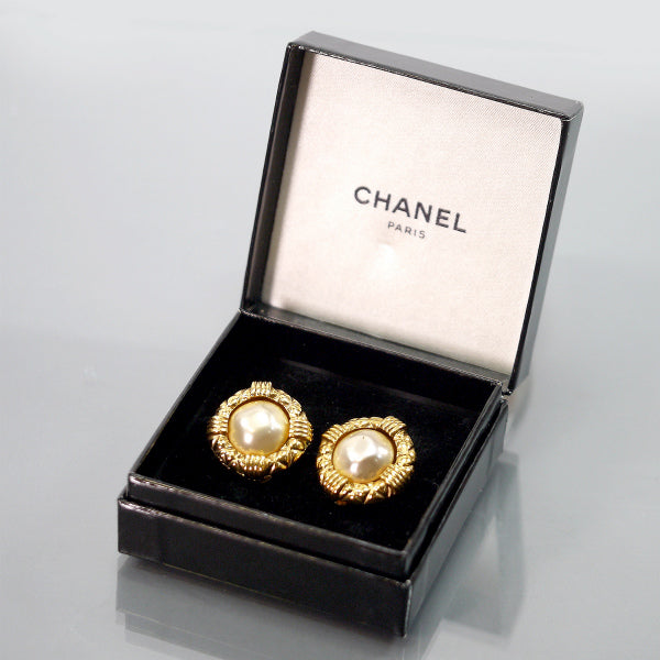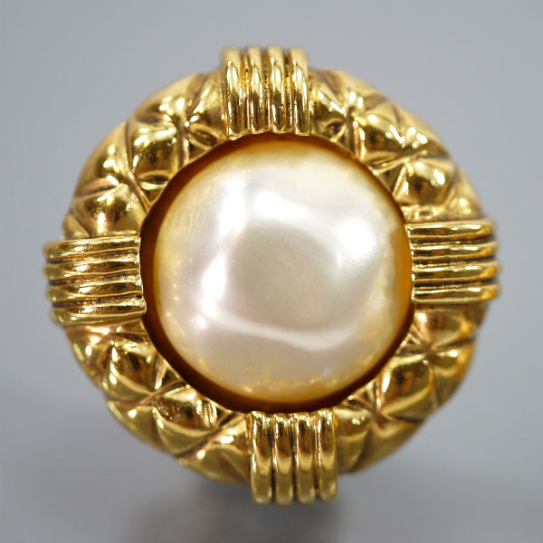 ヴィンテージシャネル パール×マトラッセ イヤリング(ゴールド)