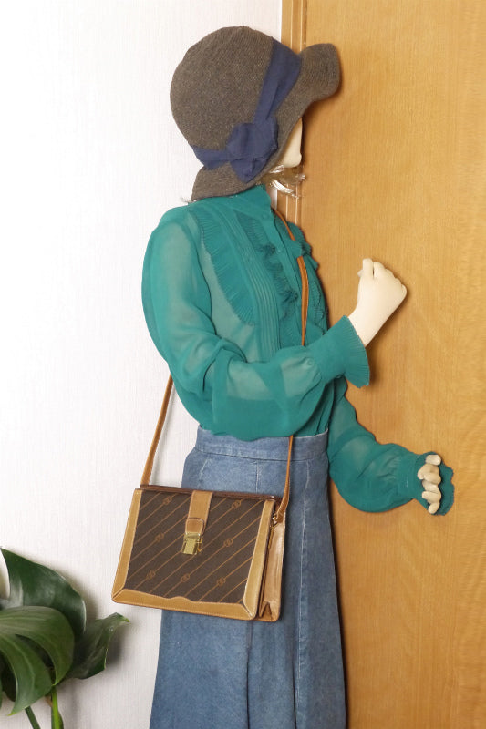 オールドグッチ70S 流れ星GG柄スクエアショルダー(茶)