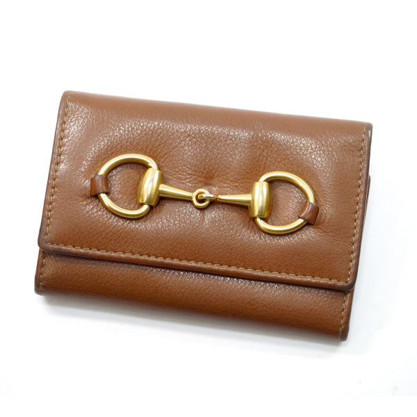 OLD Gucci 総革ホースビット金具キーケース(茶/箱付き)