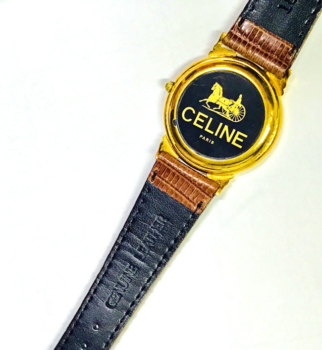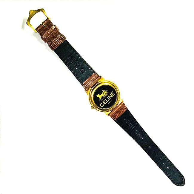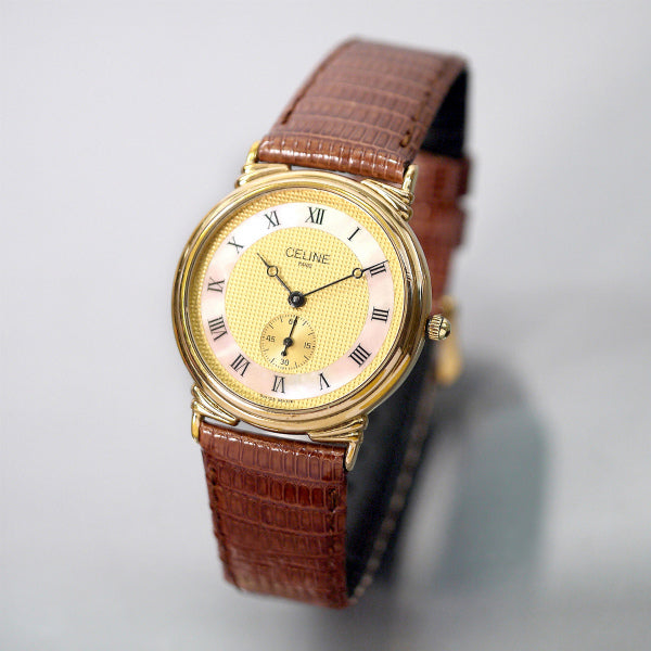 OLD CELINE シェル盤ゴールド腕時計(茶)