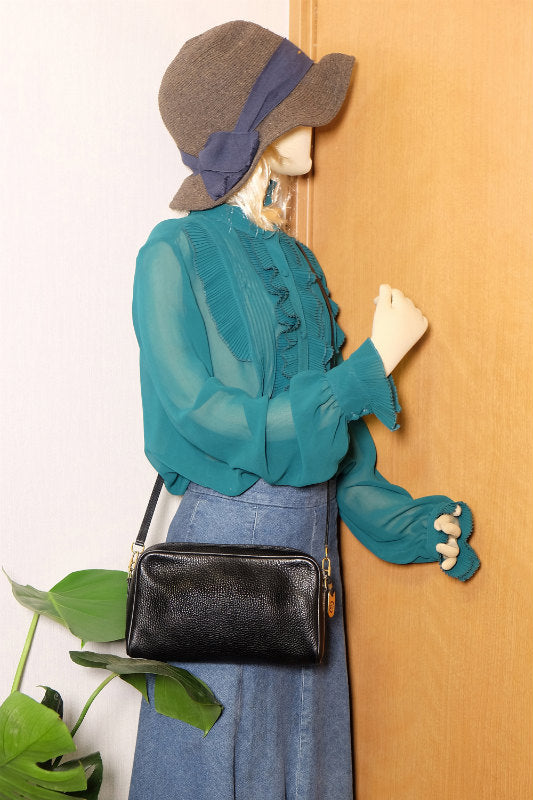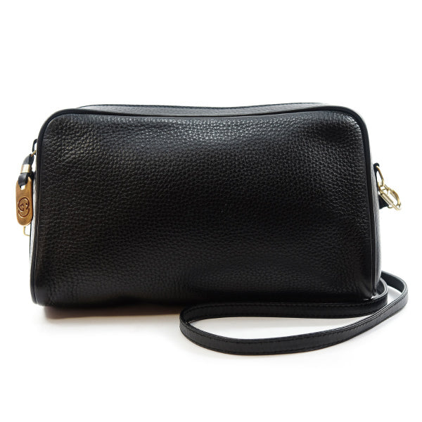 オールドグッチ 型押しレザーシンプル斜めがけショルダー(黒)
