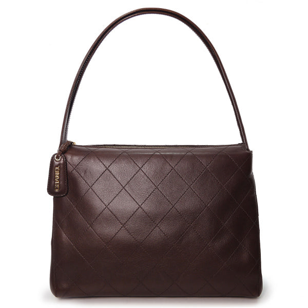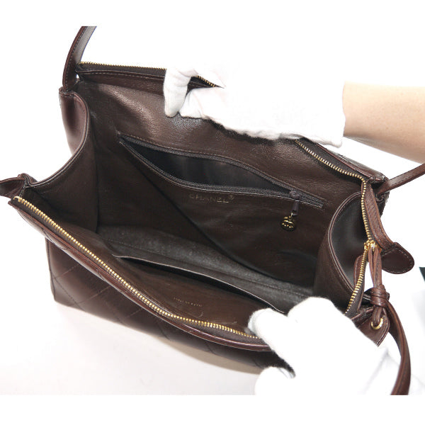 OLD CHANEL マトラッセ大型ハンドバッグ(濃茶・ラムスキン)