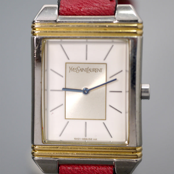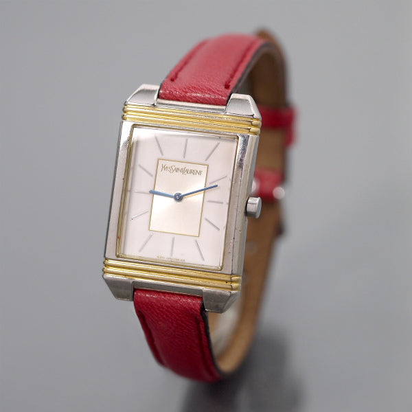 YVES SAINT LAURENT 赤バンド スクエアウォッチ