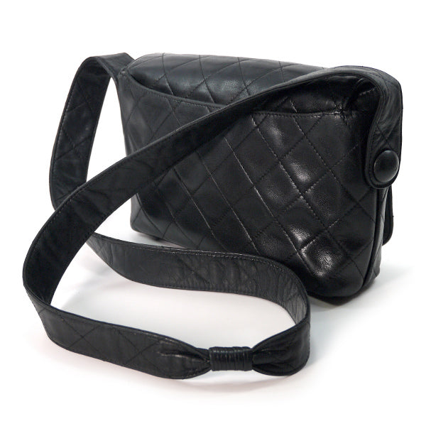 OLD CHANEL ラムスキンマトラッセ ココマークショルダー(黒)