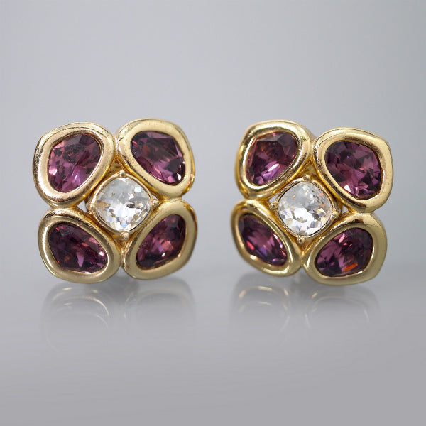 フラワーデザイン大粒ストーンイヤリング(パープル)