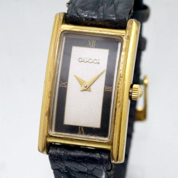 OLD Gucci 長方形フェイス クロコバンド腕時計(黒)