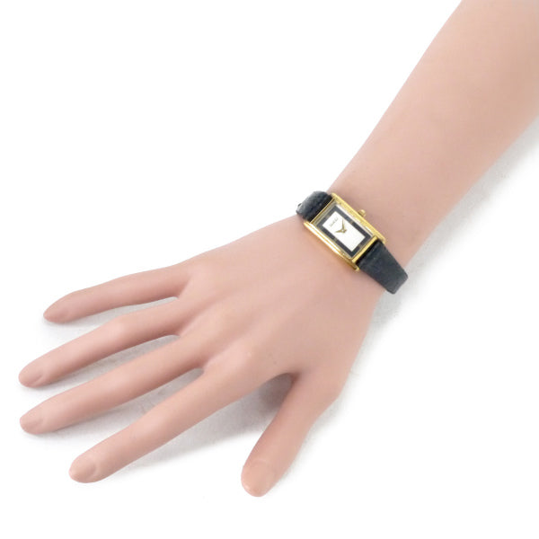 オールドグッチ 長方形フェイス クロコバンド腕時計(黒)