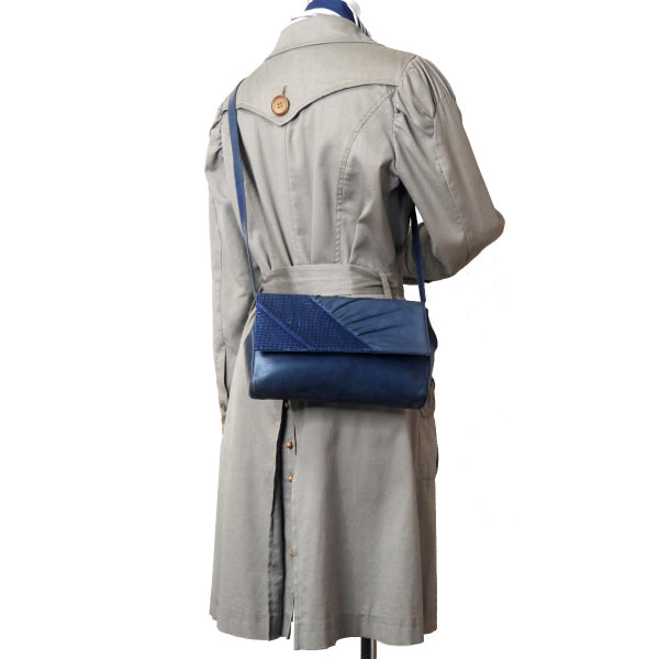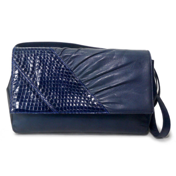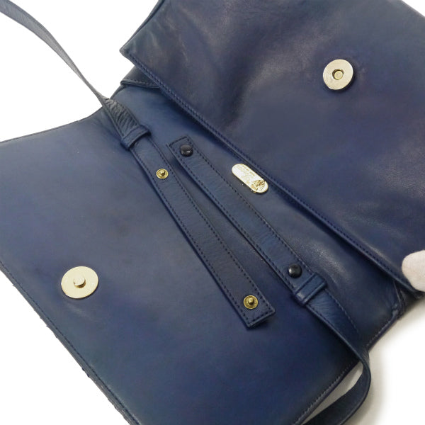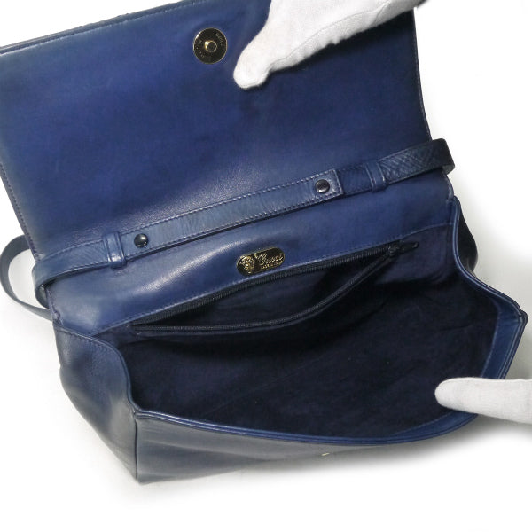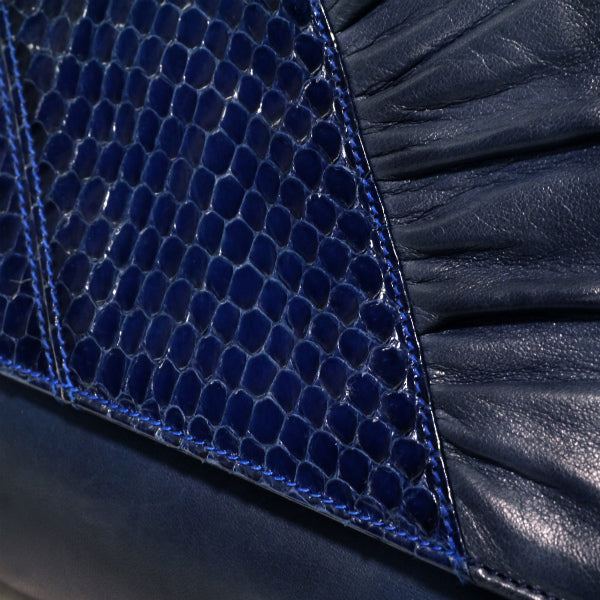 オールドグッチ パイソン×ラムスキン異素材コンビショルダー(ネイビー)