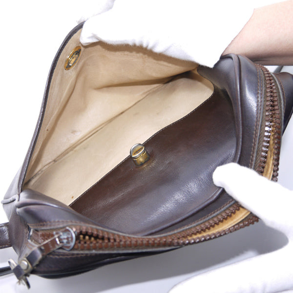 オールドグッチ 70s総革サイドビットショルダー(濃茶)