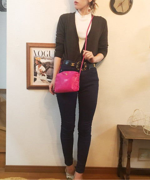 ヴィンテージランバン ラム革ミニポシェットショルダー(ピンク)