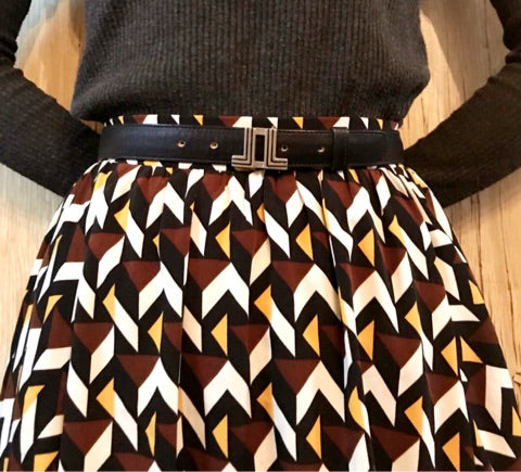 女性らしさを強調する細めのベルトで、ワンランク上のコーディネートに仕上がります
