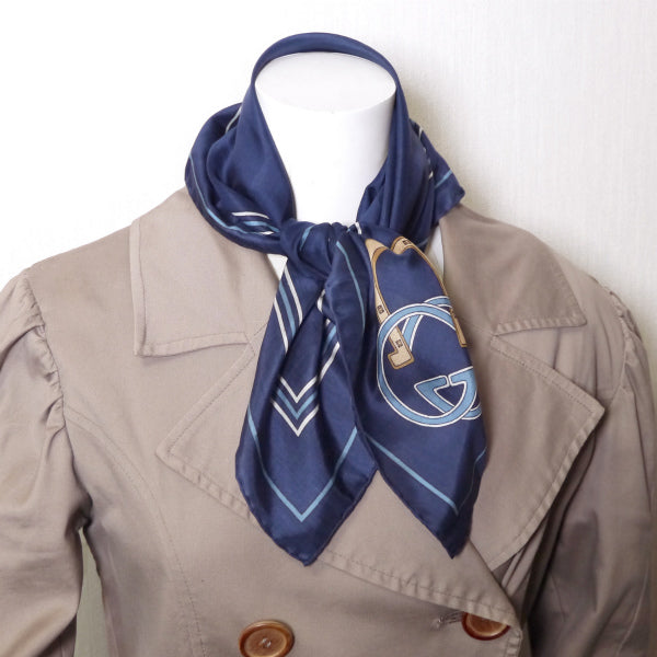 OLD Gucci インターロッキング×ビットスカーフ(青)