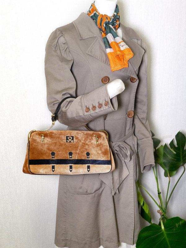 ロベルタ だまし絵カラベラ ハンドバッグ(モケット/明茶 )