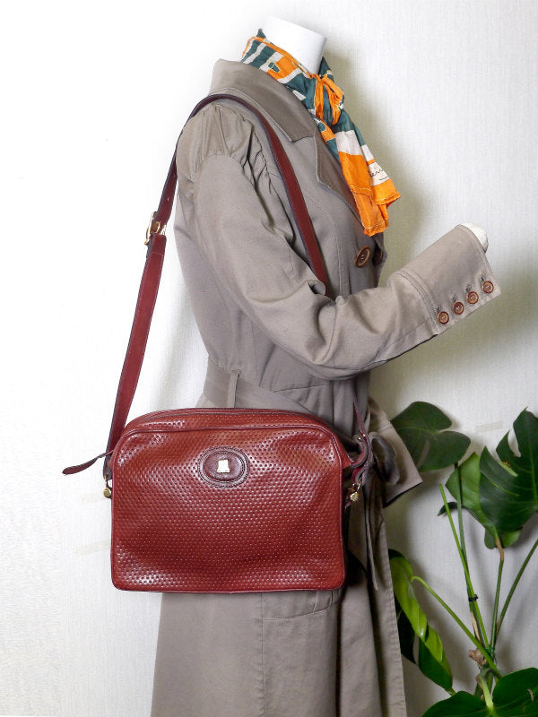ヴィンテージランバン 総革パンチングショルダーバッグ(赤)