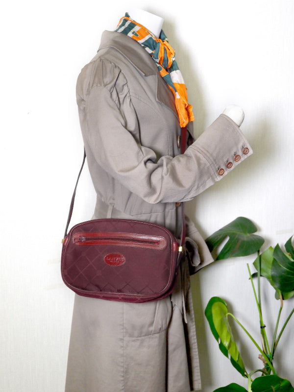 ヴィンテージランバン ロゴ チェック柄ジャガードショルダー(ボルドー)