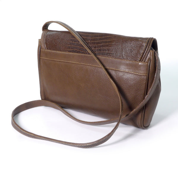 ランバン 総革エキゾチックデザインショルダー(茶)