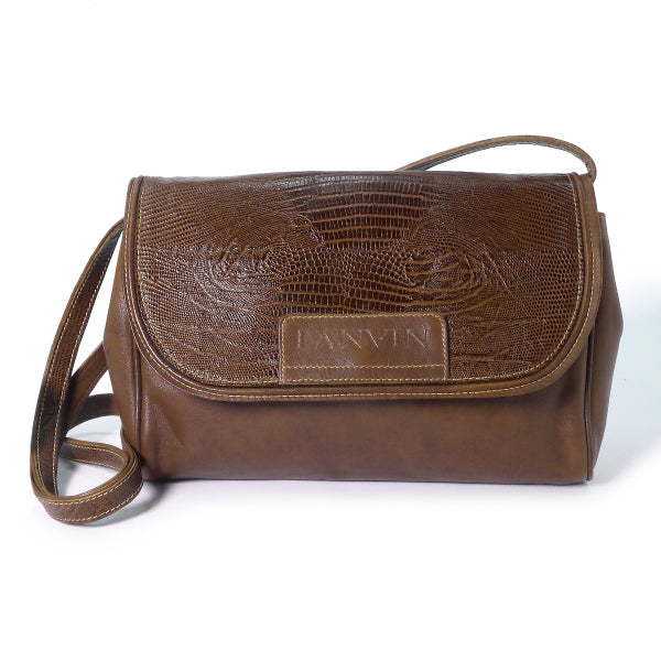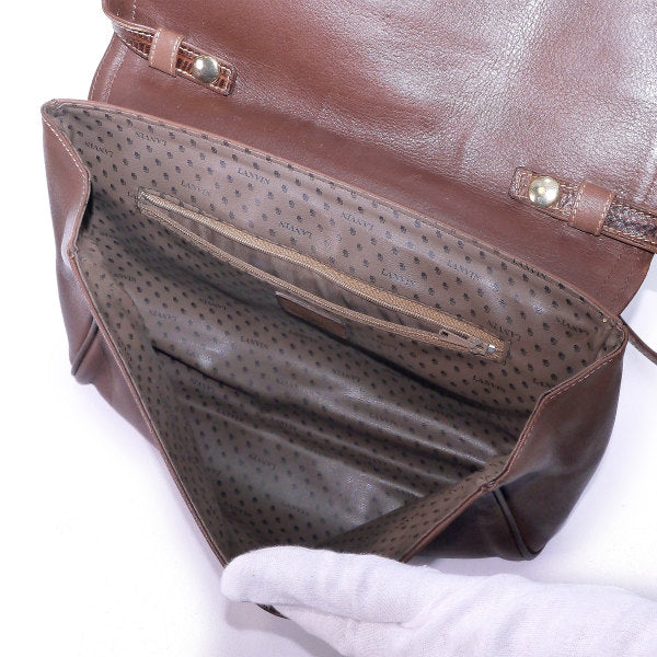 Lanvin 総革エキゾチックデザインショルダー(茶)