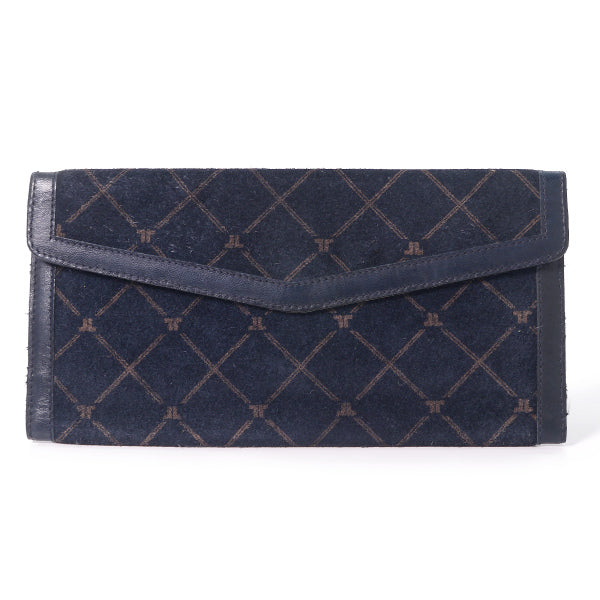 ヴィンテージランバン ロゴ チェック柄スエード長財布(紺)