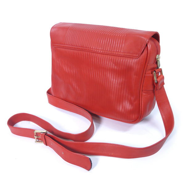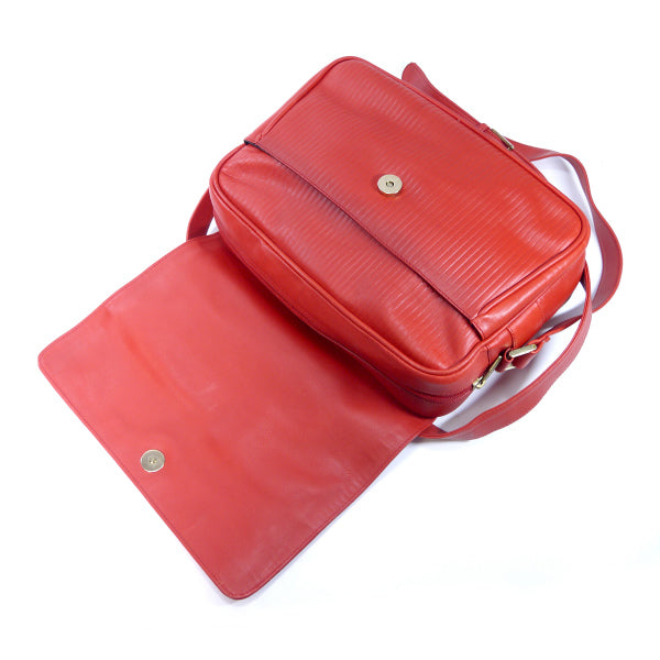 ヴィンテージランバン 総革ライン柄スクエアショルダー(赤)