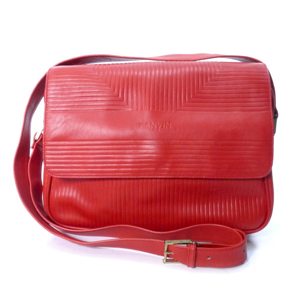 Lanvin 総革ライン柄スクエアショルダー(赤)