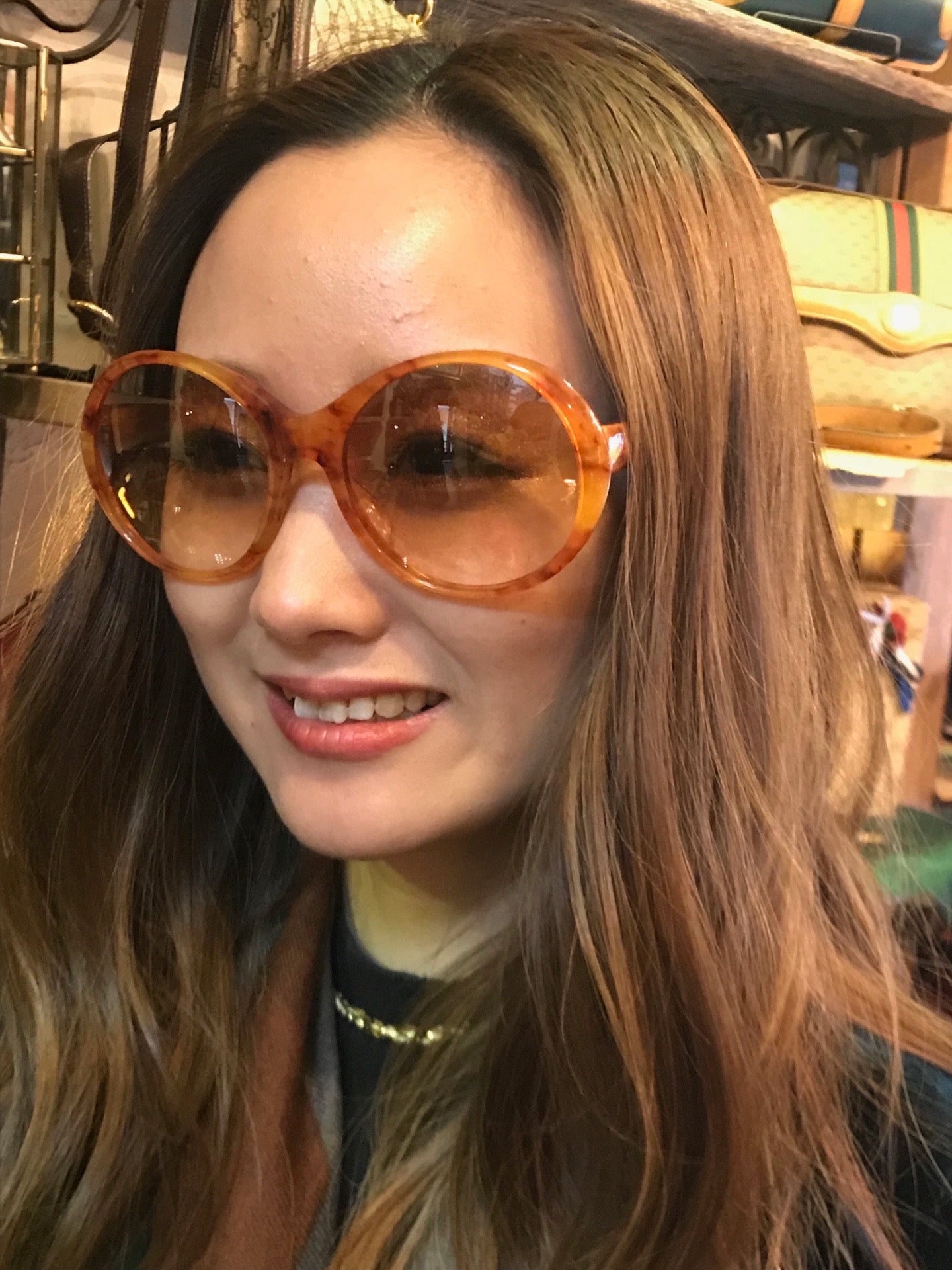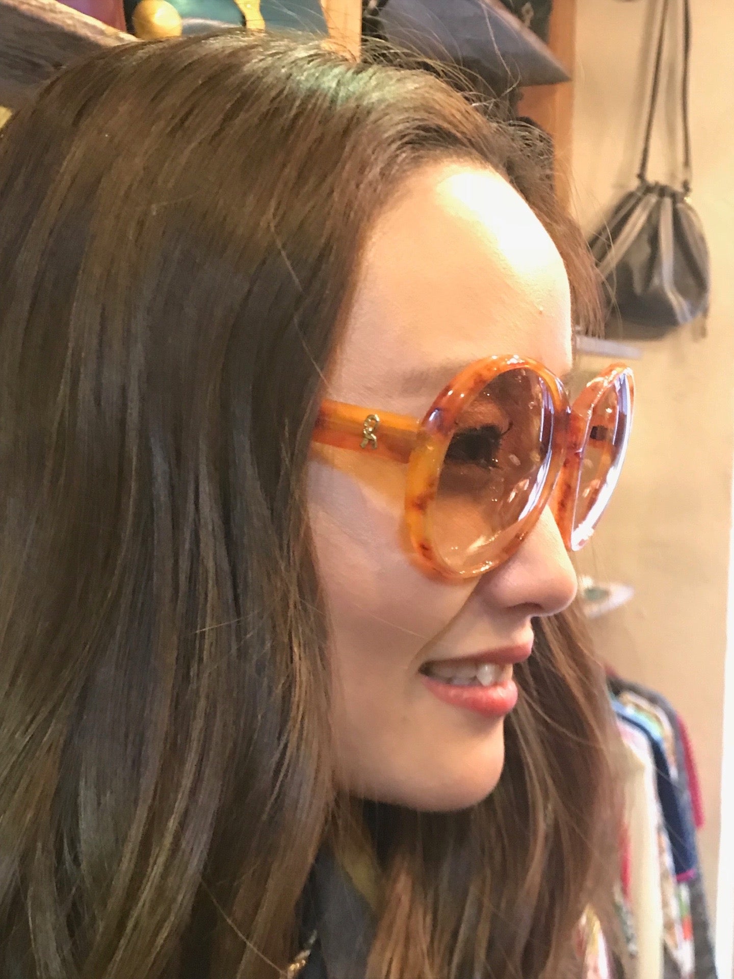 透明感のあるべっ甲フレームが個性的かつ、フェイスに馴染みやすいです☆