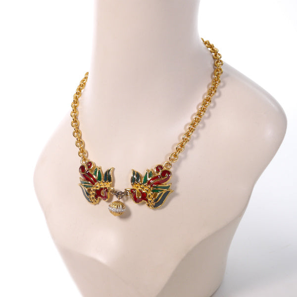 LANVIN バード イヤリング&ネックレス セット(ゴールド×赤×緑)