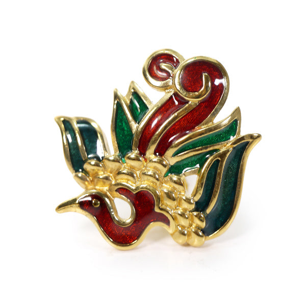 レッドとグリーンの美しい鳥が2体向かい合った、豪華なデザイン