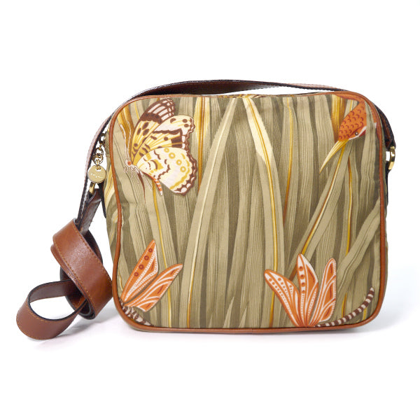 軽くて扱いやすいナイロン素材(柄)×本革(茶部分)