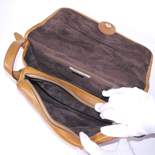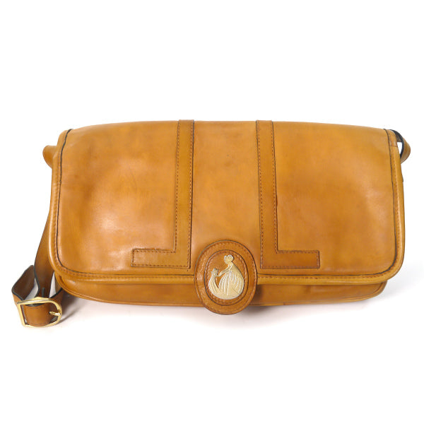 ヴィンテージ ランバン ロゴプレート総革ショルダー(キャメル)