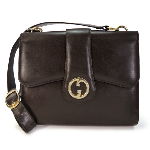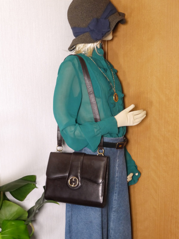 オールドグッチ総革GGマーク斜めがけショルダー(濃茶)