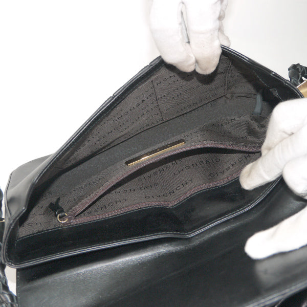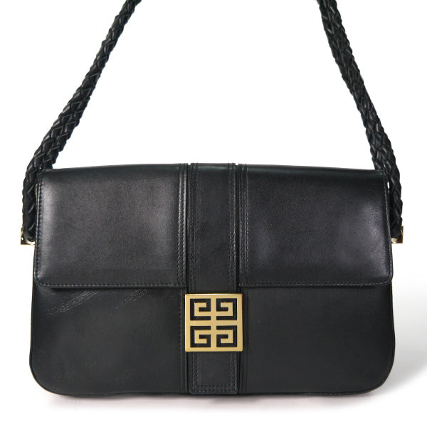 GIVENCHY ロゴプレート総革ショルダー(黒)