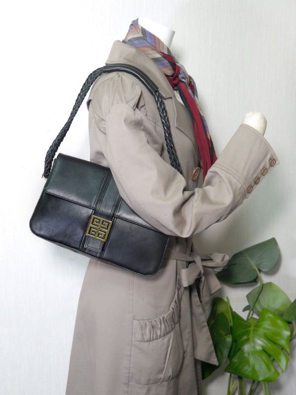 ジバンシィ ロゴプレート総革ショルダー(黒)