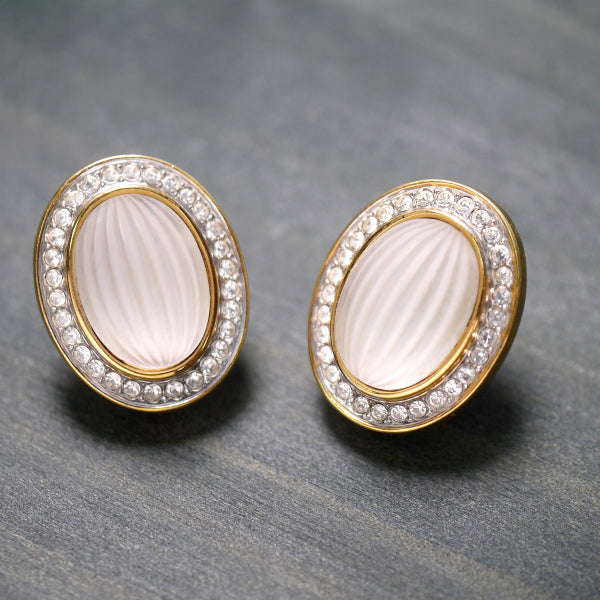 LANVIN 楕円形クリア×ジルコニア イヤリング
