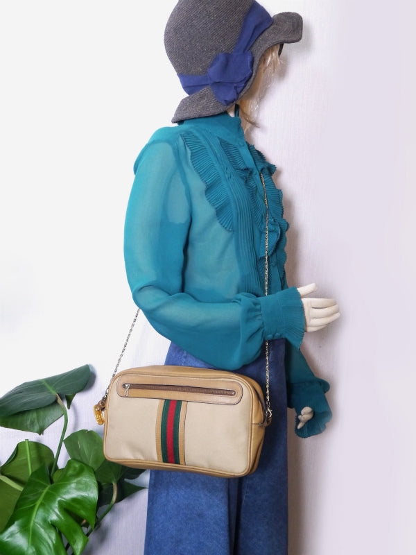 OLD Gucci チェーンクラッチ横長ショルダー(キャメル)