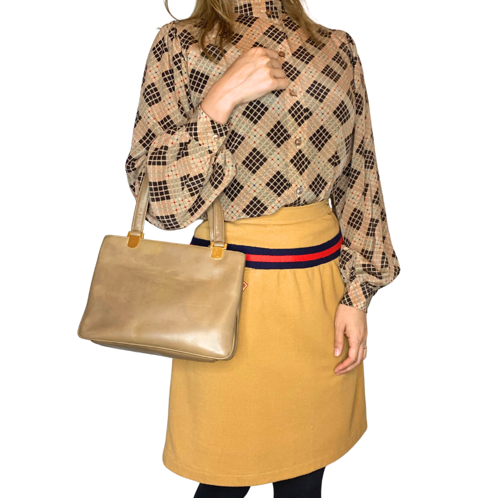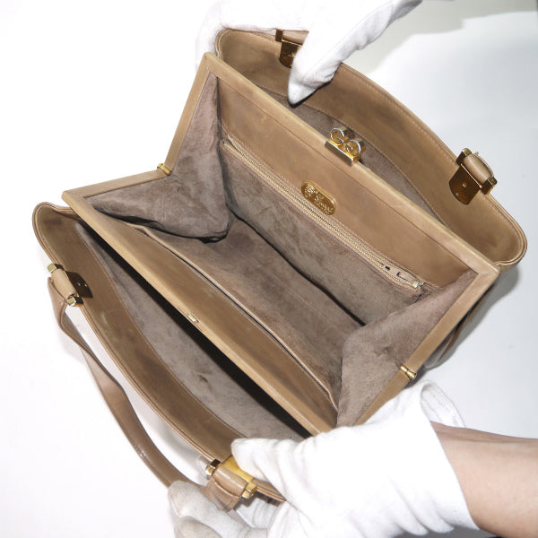 OLD Gucci 総革がま口 ハンドバッグ(ミルクティー)