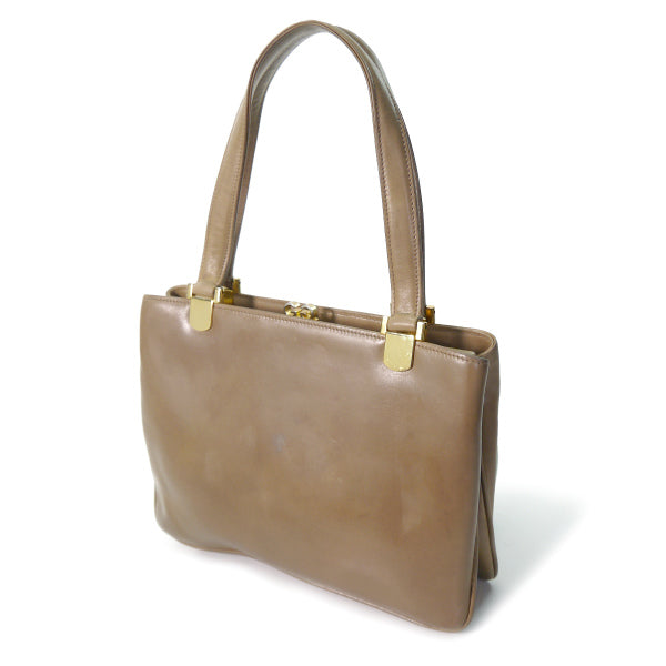 オールドグッチ 総革がま口 ハンドバッグ(ミルクティー)