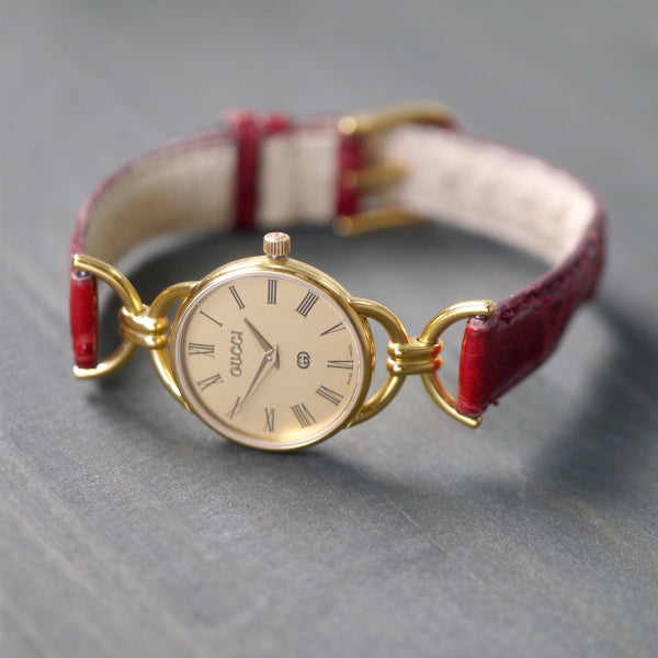 OLD Gucci ギリシャ数字 クロコ腕時計(赤)