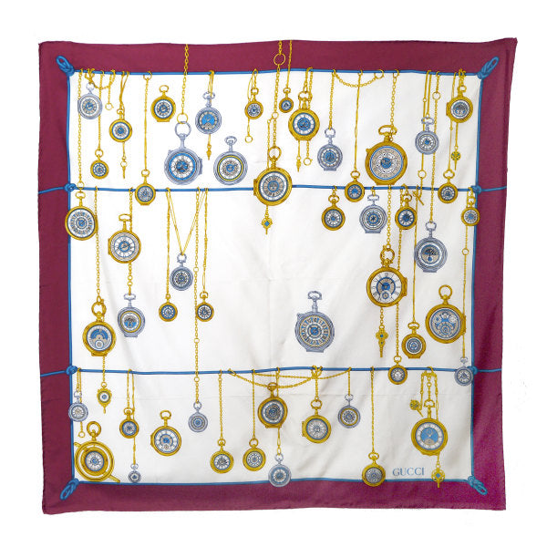 OLD Gucci 懐中時計 大判シルクスカーフ(ボルドー)