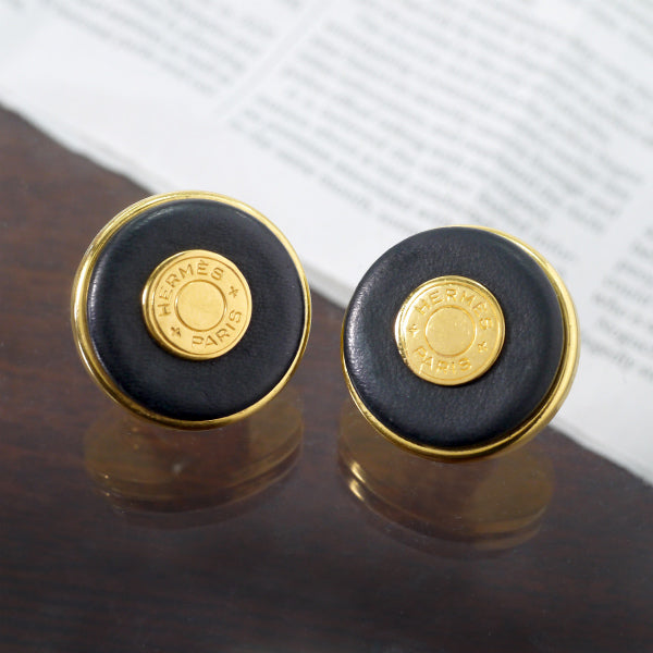 エルメス セリエ×レザー イヤリング(黒)
