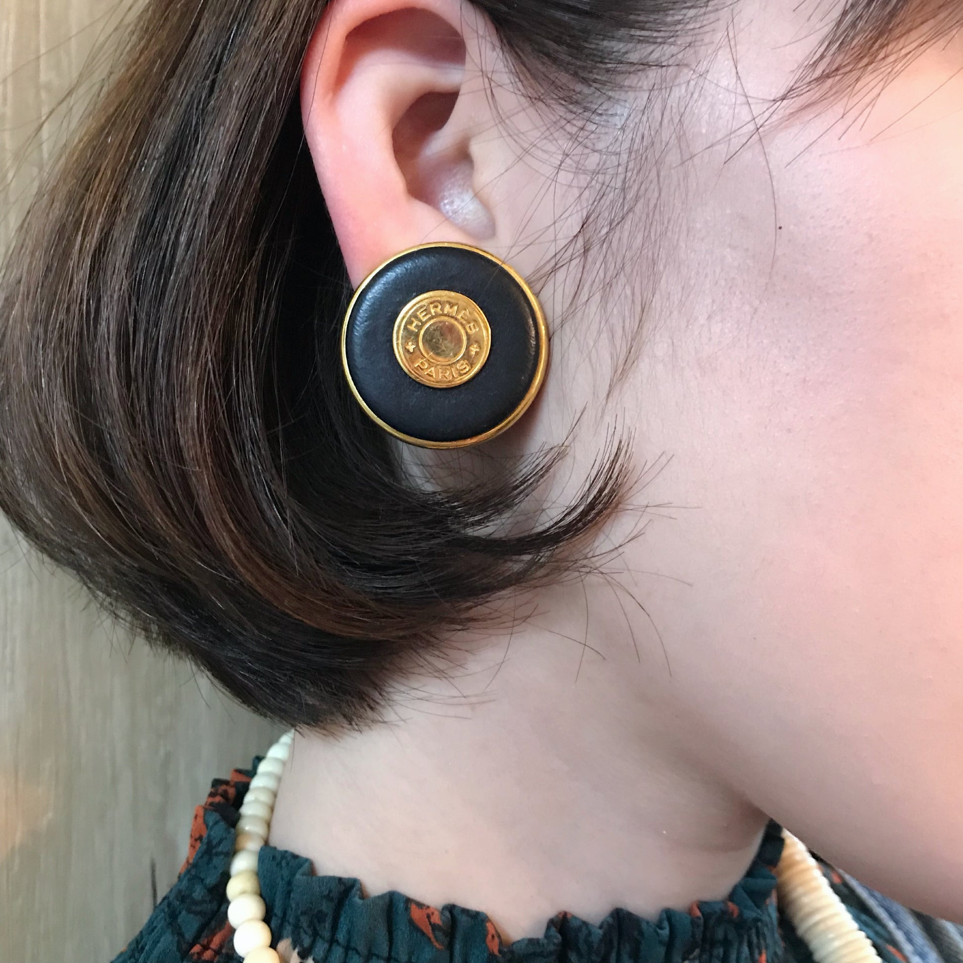エルメス定番のセリエコインと、ブラックレザーのコンビが素敵なイヤリング☆