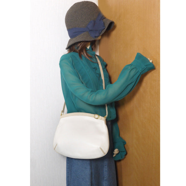 オールドグッチ総革ベルトデザイン丸型ポシェット(白)