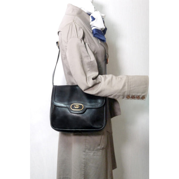 オールドグッチ 70S!総革スクエア斜めがけショルダー(黒)